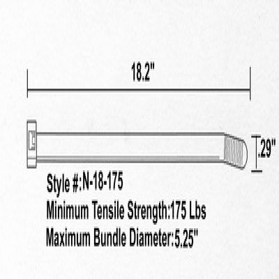 Item: N-18-175 -    The N-18-175 heavy duty premium nylon cable tie is 18.2 inches long, has a 175 lb minimum tensile strength, is U.L. recognized, meets military specifications where applicable and can bundle wires, cables or any other product up to 5.25 inches in diameter. This tie comes in natural color and is packed 50 pieces per bag and 1,000 pieces per carton.